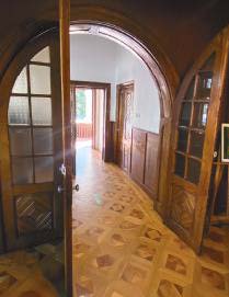 Impresionează starea impecabilă a parchetului din stejar, montat cu model gen Versailles, cu lamelele împletite într-un pătrat. Din același lemn sunt și porțiunile de parchet ce deservesc lateralele construcției, modelul însă fiind mai simplu, tip englezesc. La exterior, în cerdacul neoromânesc pardoselile expuse parțial intemperiilor sunt din materiale rezistente – și care impresionează prin naturalețe și durabilitate – arată impecabil după secole de la punerea în operă. La intrare, pe terasa mare avem de-a face cu o gresie arsă tip cotto în nuanțe sângerii, iar pe balcoanele în stil autentic țărănesc cu un mozaic în culoarea pietrei cu modele roșiatice, mozaic pe care-l întâlnim și pe scara de acces. O notă specială de rafinament este indusă de tâmplăria din lemn masiv cu broderii unice și geniale în simplitatea lor – atât la ancadramentele ferestrelor, cât și la uși și la îmbrăcămintea grinzilor masive din cărămizi arcuite. Plafoanele încăperilor mari de la parter sunt îmbrăcate în lemn și finisate cu aceeași atenție.