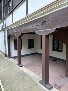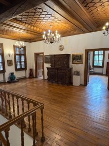 La pardoselile ceramice de la parter, instalate la renovarea din anii 1970, un efect deosebit îl dau treptele care dau diferențe de nivel și cele de la baza scării, realizate din grinzi groase le lemn. Lemnul are o prezență importantă în structura și amenajarea casei (stâlpii de la intrare, veranda largă de la etaj, lambriurile, tâmplăria, plafoanele sculptate sau casetate etc.), ceea ce conferă acesteia o căldură și o intimitate aparte. Veranda menționată era inițial un pridvor deschis, care a fost închis la renovarea din 1920, în timp ce golurile ferestrelor care dădeau spre acesta au fost lărgite, pentru a avea un aport mai mare de lumină. Parchetul, de asemenea, este din lemn de stejar, montat englezesc (wood strip), care este de dată recentă – din anii 1970, ca și pardoselile ceramice; chiar dacă în urmă cu sute de ani parchetul avea probabil alte modele, s-a păstrat totuși acest aspect, al adoptării pardoselilor din lemn. Știm cel puțin că arhitectul Melik folosea parchet la proiectele pe care le derulase, inclusiv la Istanbul.