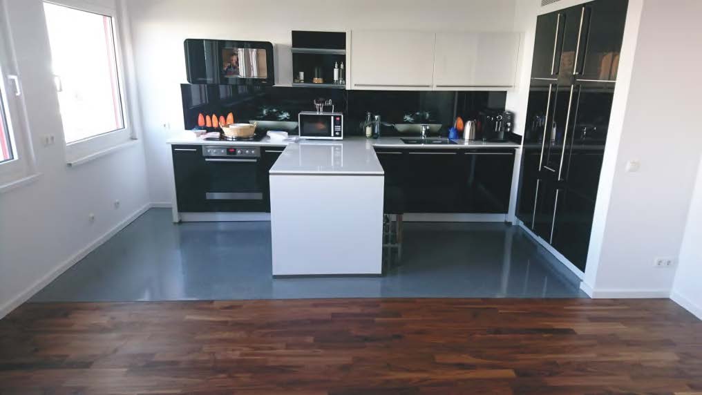 Într-un timp foarte scurt, cu efort redus, se obține o pardoseală cu aspect de granit și cu rezistențe mecanice extrem de ridicate. Pentru instalarea parchetului, ca amorsă pentru pregătirea stratului suport s-a utilizat Tiefengrund D 7 și s-a nivelat stratul suport cu șapa autonivelantă Nivelliermasse OS 50, iar lipirea parchetului s-a realizat cu adezivul de parchet X-Bond MS-K 511.