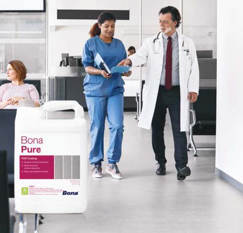 Am solicitat un studiu privind utilizarea sistemului comercial Bona pe pardoselile LVT – utilizate de obicei în spitale și alte zone sensibile la igienă. Testul a fost realizat în colaborare cu Institutul IFR din Germania. Scopul testului a fost acela de a demonstra că o suprafață netedă, fără rosturi, așa cum se prevede în regulile standardului german TRBA, poate fi creată prin supraacoperire cu Bona Pure.